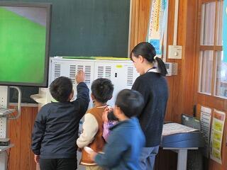 3年生の教室を覗いてみると、びっくり。スーパーマリオブラザーズのルイジがいるではありませんか。ハロウィーンはもう終わっているのに誰だろうと思ってよく見てみると、ALTのロバート先生でした。ルイジの衣装を着たロバート先生が教室に入ってきた時、間違いなく子どもたちから歓声があがったことと思います。なぜ今日の外国語活動のためにロバート先生がルイジの衣装を着て来たのかが知りたくて、しばらく学習の様子を見ていましたが、子どもたちとのやり取りを見ていても、その理由は分かりませんでした。いつもロバート先生はオーバーアクションで、子どもたちをグッと引きつける授業スタイルです。その様子を見る度に、いつも感心させられます。3年生ですから、外国語活動の授業をとおして、子どもたちが英語は楽しいなと思ってくれれば、それでよいと思います。今度、ルイジの衣装を着ていた理由を直接、ロバート先生に聞いてみようと思います。