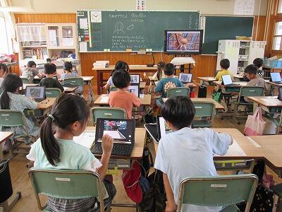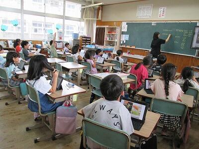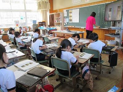 毎日、2時間目に校内を回ることが日課になっていますが、1年生の教室では昨日も今日も子どもたちがタブレットを使って学習していました。