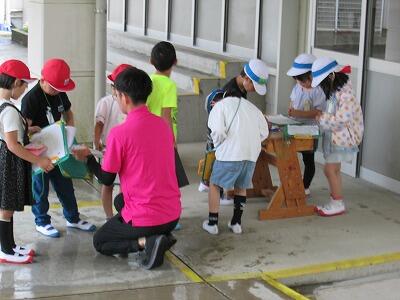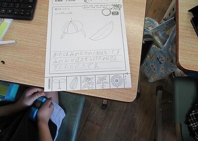 その声に誘われるように運動場に行ってみると、1年生は生活科の学習で子どもたちが虫取り用の網とかごを持って、虫探しをしていました。中には私の姿を見つけると、駆け寄ってきて、「校長先生、カタツムリとダンゴムシを捕まえました。」「私のかごの中には、バッタが3匹います。」と得意げな顔をして見せてくれる子ども達がいました。とても目が輝いていました。3連休明けにもかかわらず、子どもたちはとても元気な様子で感心しました。