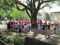 先週末に九州南部が梅雨入りしたので、今日は予行練習ができないと思っていました。ところが、朝、空を見上げると曇り空。天気予報を観てみると、今日1日曇りマークになっていたので、これなら、予定通り、予行練習ができると思いました。朝、出勤するとすでに職員が運動場の水がたまったところに砂を入れていたり、ラインを引いたりするなど着々と予行練習の準備を進めていました。今日の予行練習のねらいは、プログラム通りに種目を実施することにより、高学年児童が運動会の流れの中で自分の係の仕事と動きを確認することでした。ひと通り、徒走、団技、表現(ダンス)、リレーをプログラム通りに流したので、高学年児童は自分の係の仕事と自分の動きを確認することができたものと思われます。運動会本番は24日(土)ですが、子どもたちには「早寝早起き朝ごはん」を心がけ、体調管理に気を付けて過ごしたほしいものです。運動会当日の天気はまだ分かりませんが、保護者の方々に多数参観していただくためにも、少々の雨なら予定通り24日(土)に実施したいと考えています。