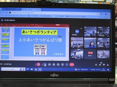 そのような中、計画委員会の子どもたちが企画したあいさつボランティア活動に学校を挙げて取り組むことになりました。名前は「上小あいさつがんばり隊」です。まさに我が意を得たりといったところです。とてもすばらしいことだと思います。