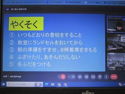 今朝、オンラインで「結団式」がありました。内容としては、計画委員による運動会スローガンの発表と団長、副団長の今回の運動会にかける思いを全校児童に伝えるものでした。団長、副団長に選ばれるだけあって、6名の団長と副団長は、画面をとおして堂々と自分の運動会にかける思いを伝えてくれました。