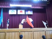 その後、校長が各団長にひと言添えて、団旗を授与しました。