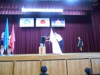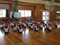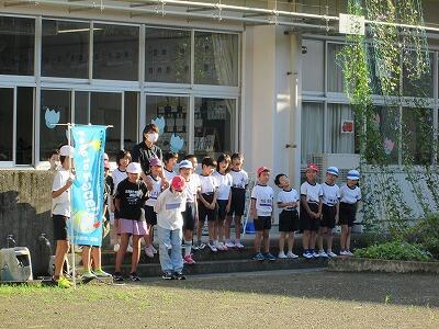 今朝、体育館に全校児童が集まって、結団式を行いました。2回目の結団式です。