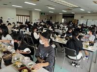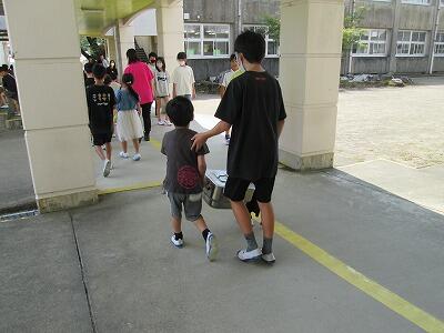 よく考えたら、10月も中旬。早いもので本年度の半分に差し掛かっています。そのようなタイミングで本校の1年生は、給食を食べた後の食器等の後片付けを自分たちでするようにしています。1年生の中には、食器等が重いと感じる子どもがいると思われるので、6年生が見守りながら、時には声をかけながらコンテナ室(食缶等の返却場所)までついて行っています。友だちと協力しながら食缶等を運ぶ1年生の姿、そして心配そうに1年生が運ぶ姿を見守る6年生の姿に心が癒されています。