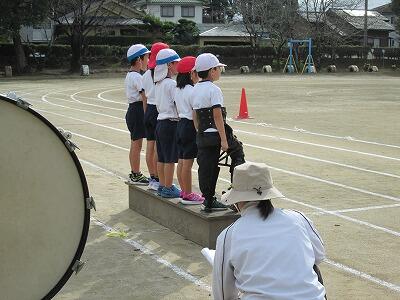 次に、全校リレーの練習が行われましたが、1年生から2年生、2年生から3年生とどんどんバトンをつないでいきました。子どもたちが全力で走る姿は、とてもかっこいいですね。全校リレーは運動会プログラムの最後の競技になります。全校リレーに選ばれた人は、学級の代表として、また学年の代表として自分のもっている力をすべて出し切って悔いが残らないようにしてほしいものです。