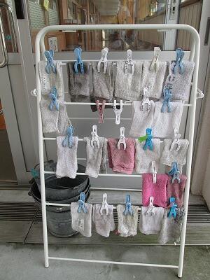 そこで、本校では、原則として、学校で名札の着脱をすることとしました。一部の学級では、このようなものを使って名札の管理をしています。今後、学校全体で揃えていく予定です。