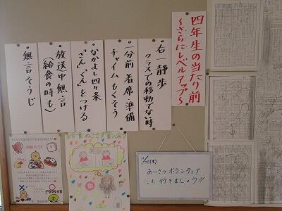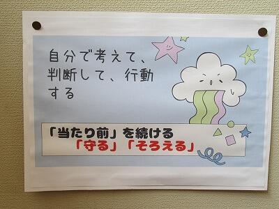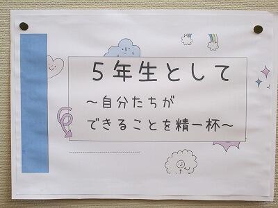年度当初のスタートをどのように切るかで、学校の1年間が決まると言っても過言ではありません。少なくとも学校教育においては、「終わり良ければ総て良し」という言葉よりも、「はじめが肝心」の方がしっくりきます。このことを念頭に置いて、各学年や各学級において、様々なルールづくりや学級づくりに取り組んでいるところです。そのような中、5年生の学年掲示板を観てみると、早速、自分で考えて判断して行動できる子どもたちを育てていくとの方針が打ち出されていました。キーワードは、「当たり前を続ける『守るとそろえる』」だそうです。また、楽しくて充実した日々のために、①正直に、②責任をもつ、③他者を尊重する、④優しく、礼儀正しく、思いやりをもつ、⑤しっかり話を聴くの5つを意識しながら学校生活を送るようです。これから先、5年生の成長を楽しみにして、子どもたちの頑張りや成長を給食時間の放送の中で伝えることにより、「褒めて伸ばす教育」を推進していきたいと考えています。