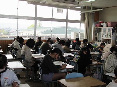 今日はチャイムが鳴りません。6年生が全国学力学習状況調査を受けているからでした。調査は国語、算数、理科の3教科です。6年生の教室をのぞいてみると、子どもたちが真剣な表情で問題を解いていて、鉛筆で書く音だけが教室内から聞こえてきました。教室の窓越しではありますが、ぴりぴりとした緊張感が私にも伝わってきました。4月のこの時期に行われる調査なので、5年生までで学習してきたことを生かして考える問題が出されています。また、問題には、文科省が各学校においてこの程度の問題が解ける子どもたちを育てていますかというメッセージが込められていると思います。子どもたちの手ごたえが気になります。問題を観てみると、日頃、子どもたちが受けている単元テストとは違って、総合的な力が問われる問題ばかりでした。テストの結果が全てではないと思いますが、学力を観る一つの材料にはなります。結果が戻ってくる前に問題分析を行って、都城市教育委員会が重点取組として掲げている「基礎学力の向上」を図るとともに、「子どもが主役の授業づくり」に迫ることで、本校でも国が求めている学力の定着が図られるように努めていきたいと思います。