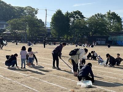 10月27日(日)は、運動会です。子どもたちがすばらしい運動場で走ったり、踊ったりできるように、6日(日)に保護者の方々がグラウンド整備をしてくださいました。作業は約1時間弱でしたが、おかげさまで運動場がきれいに整備されました。今回のグラウンド整備に協力いただいたPTA役員の皆様を初め、多くの保護者の方々に感謝いたします。