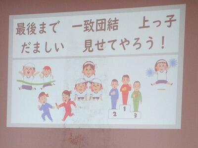 今日の予行練習では、優勝が青団、応援賞が白団でした。リレーや団技で失格行為が何回かあったので、運動会当日はルールを守って、自分たち一人一人の力を出し切って思い出に残る運動会にしてほしいと思います。