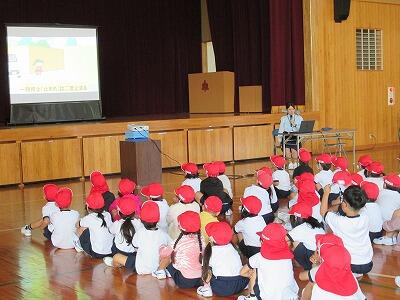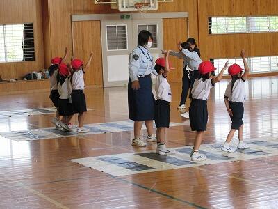 「命」。命ほど尊いものはありません。親から授かった命は、自分でしっかり守っていく必要があります。そのような考えの下、今日は都城市交通安全協会の方々をお招きして、下学年(1年生から3年生)の児童を対象に交通安全教室を行いました。今回の交通安全教室では、交通指導員の方から正しい道路の歩き方や横断歩道の渡り方について教えていただきました。正しい道路の歩き方で気を付けることは、走らないこと、車道に出ないこと、飛び出さないことの3つです。そして、信号がある横断歩道の渡り方は、手を挙げて、「右(右をよく見る)、よし。左(左をよく見る)、よし。右(もう一度右をよく見る)、よし。(横断歩道の真ん中辺りで)左(左をよく見る)、よし。」です。これが信号のある横断歩道を渡る時の基本的な動きです。ただ、信号がない横断歩道については、手を挙げたからといって、必ず車が停まってくれるとは限らないので、手を挙げて左右から来る車が完全に停まったのを確認してから、横断歩道をこの動きにしたがって、渡るようにしてほしいものです。自分の大切な命を守るためにも、今日、学習したことを日々の生活の中で実践してほしいと思います。