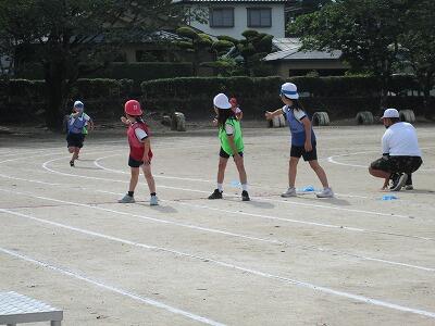 運動場の奥では、3年生が徒走(かけっこ)の練習をしていました。3年生も10月の運動会に向けて練習を開始したもようです。運動会当日は、今、自分がもっている力を全て出し切れるようにしてほしいものです。