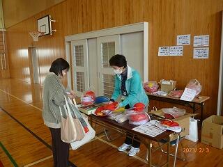 説明を資料配付とし、物品販売のみを行う。体育館が密にならないように物品販売の開始時刻を4グループに分けて設定しました。御来校いただきました新一年生の保護者の皆様も協力していただき、大きな混乱もなく、無事終わりました。