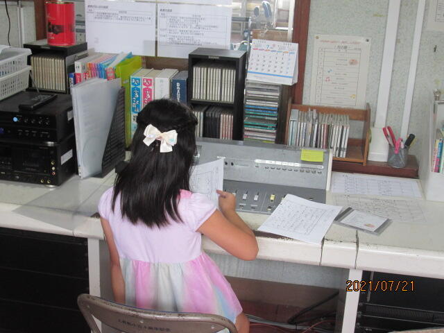 そして、後半は「Good morning everyone,‥」と英語のアナウンスも入ります。この放送で上小の気持ちのよい朝のスタートがきれます。しかし、この放送が始まる前には、放送室で原稿を読む練習をする委員会の人の姿があります。