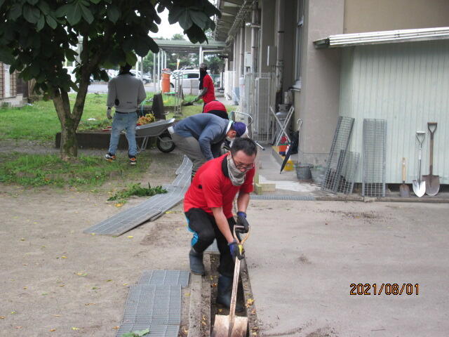 学校の教育活動の裏には、いろいろな方の努力と協力があるのです。当たり前ととらえず、常に感謝の気持ちを忘れないことに改めて気付かされました。暑い中、作業にお手伝いいただいた皆様に心から感謝申し上げます。