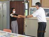 この度、都城木青会児童木工工作コンクールの会長賞を、5年浅岡さんが受賞しました。賞状と副賞が学校に届いたので、早速、校長室で授賞式を行いました。