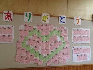 ある雑誌の対談に書いてあったのですが、「外国に行く時に、その国の言葉で何か一つ覚えておくとすれば、あなたはどんな言葉を挙げますか。」という質問に対して、その方はその国の「ありがとう」という言葉だと答えていました。英語で言えば、「Thank you」ですね。世界どこに行っても、「ありがとう」という言葉で、相手に感謝の気持ちを伝えれば、仮に相手の言っていることが理解できなかったとしても、その場を乗り切ることができるということでした。「なるほど、確かに。」と、納得したところでした。今、校内に「ありがとうカード」が掲示されています。たくさん、ありがとうのメッセージが書いてありました。足を止めて2年生のメッセージを読んでみると、「いつも遊んでくれてありがとう。声をかけてくれてありがとう。」、「牛乳をこぼした時に、一緒に拭くのを手伝ってくれてありがとう。」などが書いてありました。きっと、友だちに感謝の気持ちが伝わったことでしょう。