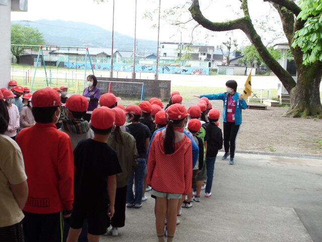新しい学年・学級になって、新しい教室から安全に避難するためには、どのルートで運動場まで避難するのかを覚え、いざという時に自分の命を守る行動が取れるようにします。子どもたちも真剣に取り組んでくれていました。