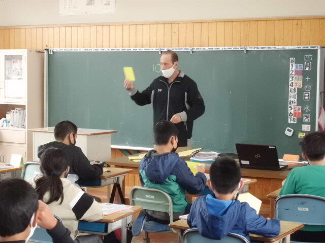 とても背が高くて、笑顔の素敵な先生で、子どもたちもローレンス先生が来て外国語を教えてくださるのをとても楽しみにしています。英語のシャワーを浴びる時間として貴重な授業となっています。みんな、頑張ろう!!