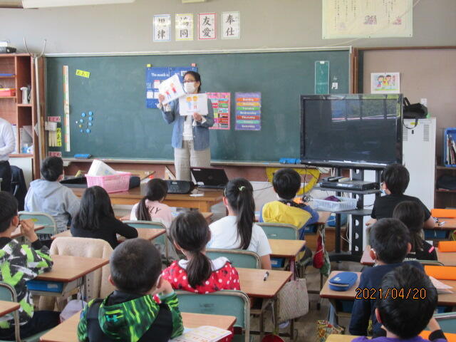 3年生の外国語活動を教えてくださるエバ先生です。今日は、エバ先生と初めての授業でしたが、元気いっぱいで楽しく学習していました。