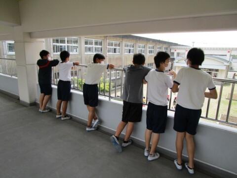 さて、本日、晴天の中、3年生が運動場で体力テストを実施していました。いろいろな種目があるので、疲れてしまいそうですが、みんな一生懸命な顔で自分の限界に挑戦していました。頑張れ、3年生。