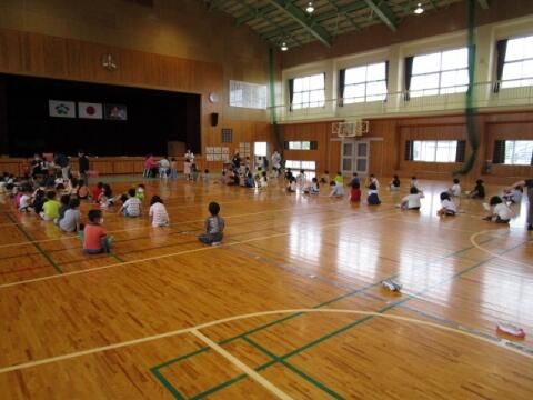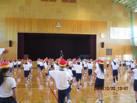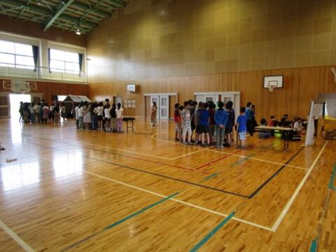 今日は朝から曇り模様で、時折、雨も降りました。6年生は最初、運動場で行っていましたが、雨が降ってきたため、野外種目を屋内種目に切り替えて、後半は体育館で体力テストを実施していました。