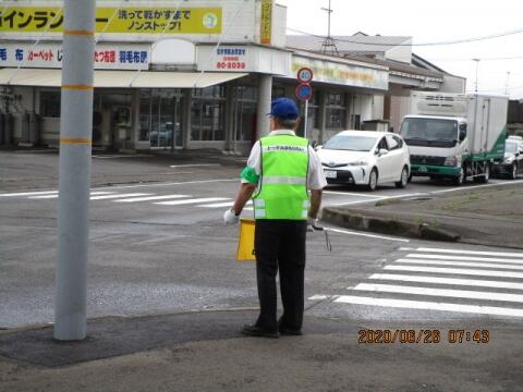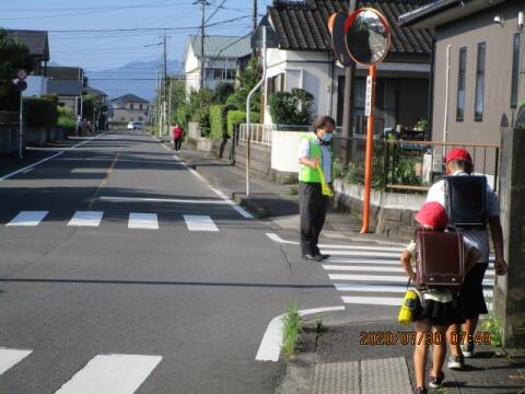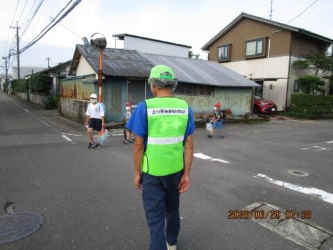 上小には、「見守りたい(隊)」がたくさんの方々で組織されており、交差点や交通量の多い場所、見通しの悪い地点に立っていただいています。安心・安全な登校にお力添えをいただいています。