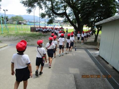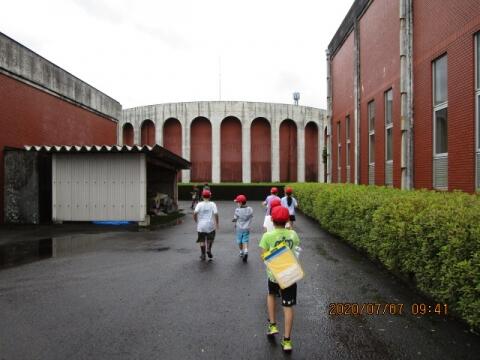 探検で気が付いた事などを書く「探検ブック」を手に持って、楽しそうに学校を出発していきました。人数が多いので、安全確保と新型コロナウイルス感染対策の観点から2クラスずつ2日間に分けて実施しました。