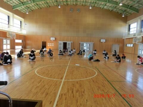 本校の緊急職員会議です。本日、どうしても、全員で、分散登校の話し合いが必要だったために、緊急に、行いました。