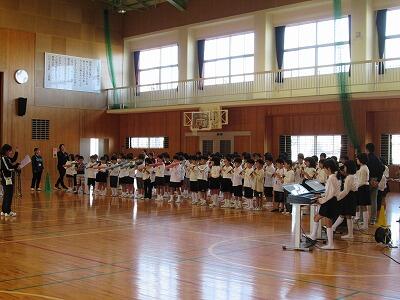 今朝、体育館に全校児童が集まって、結団式を行いました。2回目の結団式です。