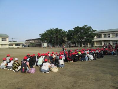 「おかえりなさい。」と声をかけると、「ただいま。」と口々に応える子どもたち。5年生が1泊2日で青島青少年自然の家に宿泊学習に行って、戻ってきました。2日間、天気に恵まれ、5年生は予定していた活動を無事終えることができました。1日しか経っていませんが、最後の閉会式の様子を見てみると、子どもたちは多少疲れているものの、少したくましくなっていたような気がしました。きっと充実した2日間になったのでしょう。今回の宿泊学習では、集団生活やすべての活動の中に、「規律・友愛・協働・奉仕」の心を育む場面がありました。これらは、5年生が来年度6年生として学校を引っ張っていくうえで必要となる心で、それを学ぶために青島青少年自然の家に行ったところです。その4つの心を育んで学校に戻ってきたかどうかは、これからの5年生の言動で分かると思います。さて、いかに・・・。