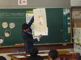 学級活動の授業で、「命のつながり」という題材でした。先祖から受け継がれてきた命のバトンについて、子どもたちがじっくりと考える様子が見られました。この1年の研修で磨かれた授業力が発揮されたすばらしい授業でした。参観された先生方からも称賛の声が多く聞かれました。