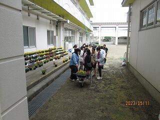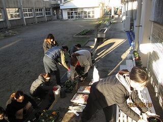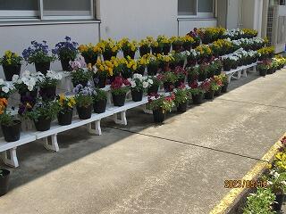 11日(日)に、PTAの環境整備部の企画・立案で花植えの準備をしていただきました。PTA役員、おやじの会、PTA環境整備部の方、本校教職員など、午前7時30分に集まって作業を行いました。