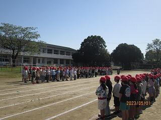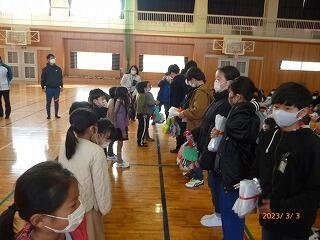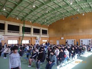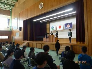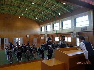 本日8時25分から、体育館でお別れ集会が開催されました。