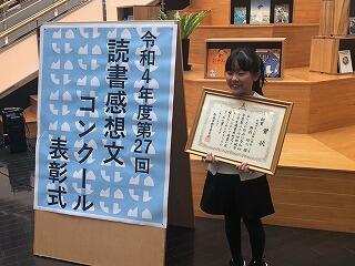 日頃の国語の学習が生かされ、御家庭での支えもあり、素晴らしい読書感想文となっていました。これからの活躍も期待しています。