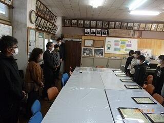 校長室で校長先生から表彰を受け、記念の写真を撮りました。今回の優勝で、他のチームが目標とするチームになったので、今まで以上に練習に励みますと笑顔で話してくれました。次の大会も頑張ってください。