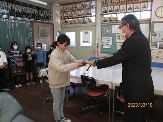 本校からは、6年生から1人「善行部門(個人)」で精励賞を受賞しました。日頃の積極的な態度やボランティアへの参加など、全校のよい見本となっていることが評価されての受賞です。