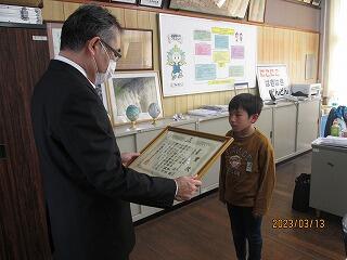 また、上長飯小学校は応募者、入賞者(金賞1名、銅賞1名、佳作4名)ともに多い等が評価され、学校賞(優秀校)を受賞しました。