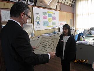 令和4年度「税に関する絵はがきコンクール」の表彰式が本校の校長室で行われました。