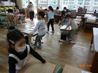 この1年間、過ごしてきた教室や廊下、靴箱などをきれいな状態にして、来年度につなげられるように全校で取り組んでいます。
