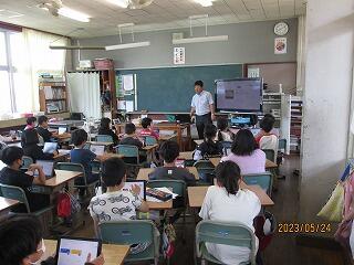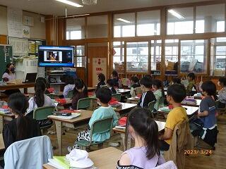 今年は、体育館と各教室をオンラインで結んで、その様子を全校児童が見ることができました。