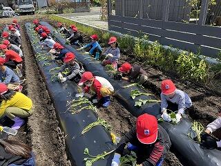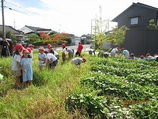 思ったよりたくさんの草があったので、子ども達もびっくりしていました。収穫する時に大きな芋がたくさん採れるといいですね。
