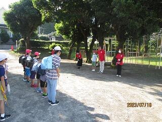前日までの雨とうってかわり、晴天に恵まれました。熱中症も心配されますが、暑さ指数は午前中そこまで高くないという予想が出ていました。ただ、水分補給はしっかり行うようにしました。