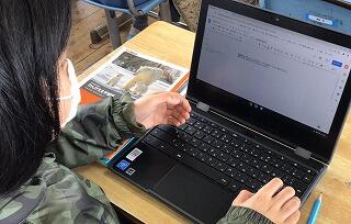 4年生でもホームポジションでキーボードの入力が素早くできるようになっている子どももいました。日々の積み重ねの成果でしょう。現在、本地区は赤圏域のため、運動場の利用制限があり、多くの子ども達が教室で静かに過ごすことになっていますが、その時もタブレットを持ってきて、キーボード入力の練習をしている子ども達も増えています。
