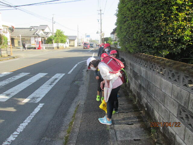 今月は、県の緊急事態宣言も解除され、本地区の感染状況も改善していることから、久しぶりに本日の朝、実施していただくことができました。まだマスク着用か続いているため、大きな声で元気な挨拶はできませんでしたが、挨拶を通して心のふれあいはできたのではないかと思っております。本日参加していただいた皆様、本当にありがとうございました。