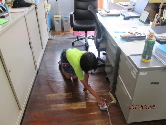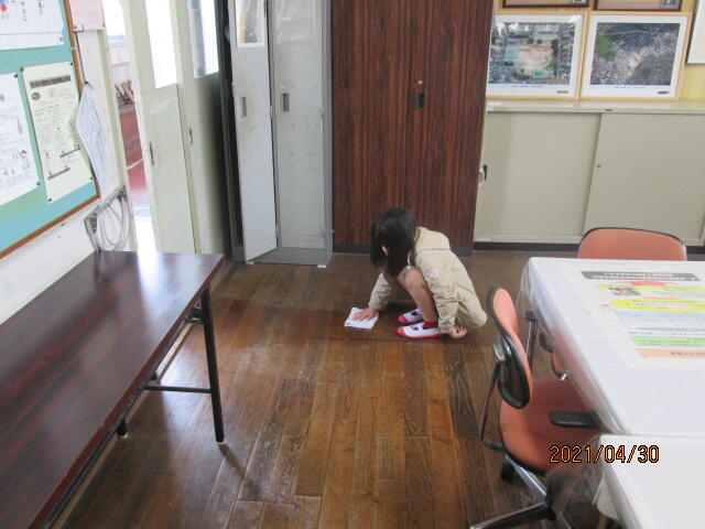 校長室掃除の子ども達もひざを床について、板の目に沿って黙々とぞうきんをかけてくれます。広い校長室ですが、てきぱきと終わらせてくれています。これが受け継がれてきた伝統なのかもしれません。頑張れ、上小っ子!!