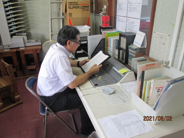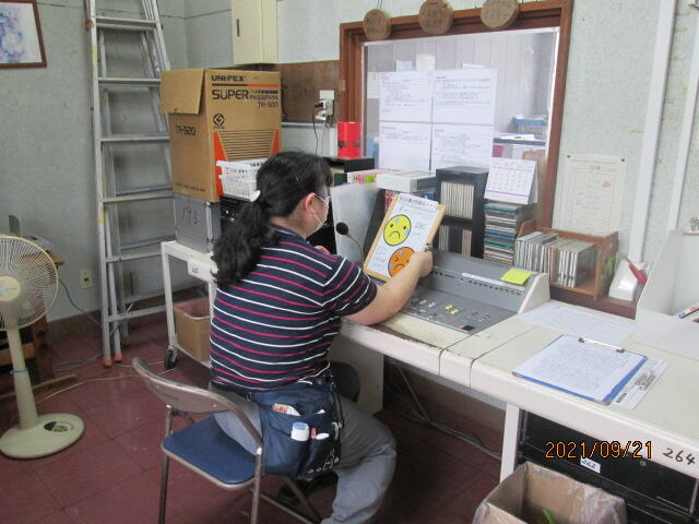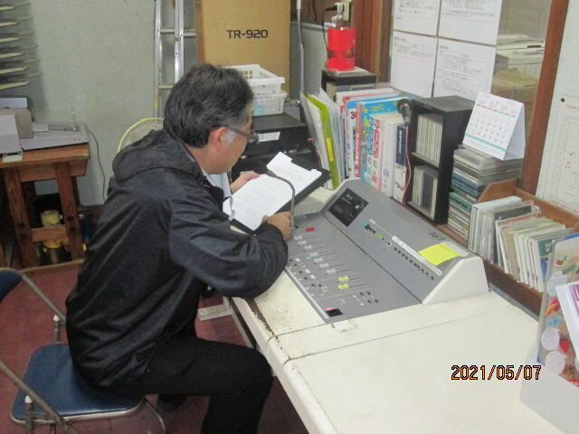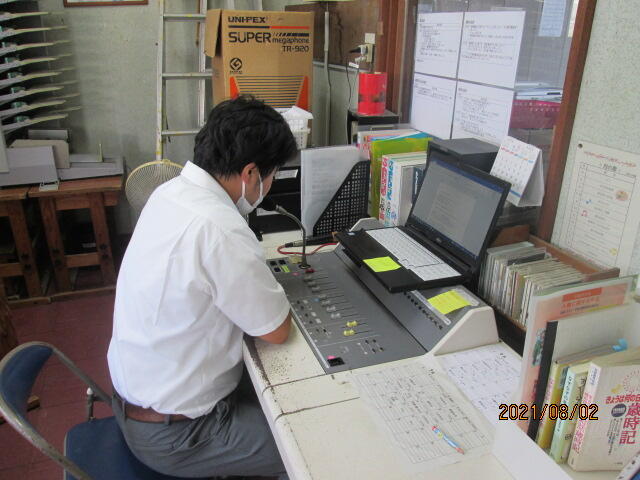 そして、後半は「Good morning everyone,‥」と英語のアナウンスも入ります。この放送で上小の気持ちのよい朝のスタートがきれます。しかし、この放送が始まる前には、放送室で原稿を読む練習をする委員会の人の姿があります。