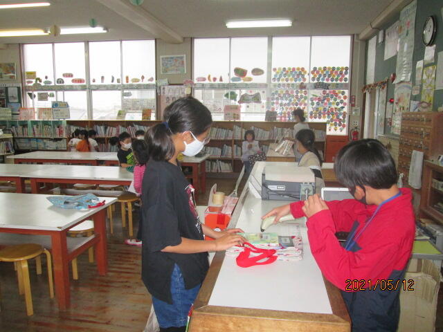 上小っ子は、本が好きな子が多く、昼休み時間の図書の返却と貸し出しには多くの児童が図書室を訪れます。学校の規模に対して図書室が狭いので、混雑してしまいますが、先生達も協力してスムーズな流れになるように取り組んてくれています。