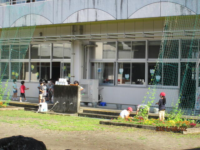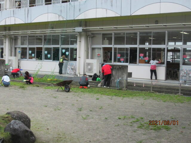 学校の教育活動の裏には、いろいろな方の努力と協力があるのです。当たり前ととらえず、常に感謝の気持ちを忘れないことに改めて気付かされました。暑い中、作業にお手伝いいただいた皆様に心から感謝申し上げます。